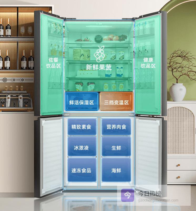 别忘了那ADF+离子净味系统,它就像个漂浮的香水精灵,不仅快速祛除异味,还能抗菌99.99%,让冰箱里的每一口空气都清新得像春天。厚实耐指纹的面板和灵活的隔板设计,精致又方便打理,放什么都挺顺手。