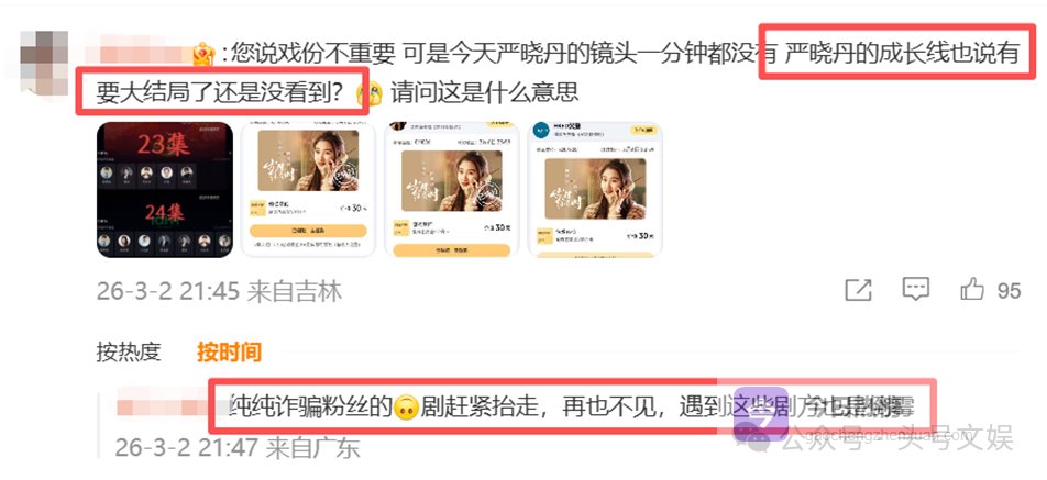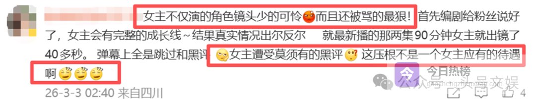 有几集连爱奇艺“只看TA”功能都没有她的选项,戏份跟男二持平。