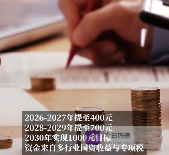 具体怎么涨,他也说得明明白白:2026到2027年,先涨到每个月400元;2028到2029年,再涨到700元;到2030年,就稳定在每个月1000元。