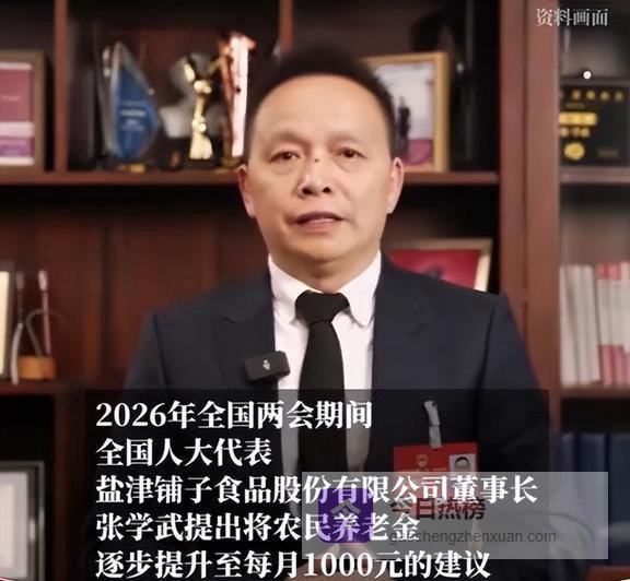 今年两会上,全国人大代表、盐津铺子食品股份有限公司董事长张学武,提了个让亿万农村老人听了都高兴的提案:2026年到2030年,分阶段把农民的基础养老金提到每个月1000元。