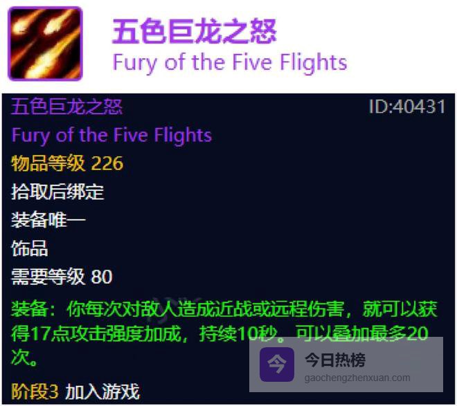 和龙魂图典一个境遇,五色巨龙之怒的话也是同样每次攻击强度拔高加了1点。对于五色巨龙之怒,喵叔以前狂暴战倒是体验过,可以是可以,但是并不能戳天花板,另外值得注意的是很多惩戒骑和冰DK大兄弟表示嘎嘎好用,所以大家还是可以眼观六路耳听八方坐等捡漏体验下的。